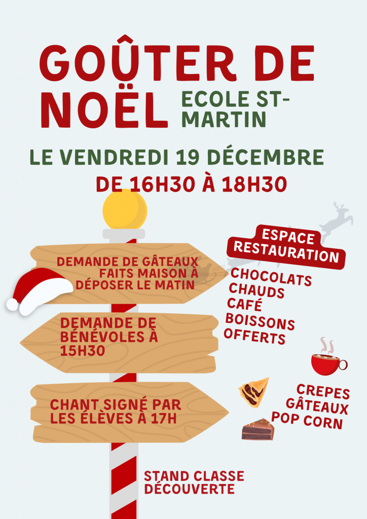 Vendredi 19 décembre aura lieu le goûter de Noël à l’école Saint Martin